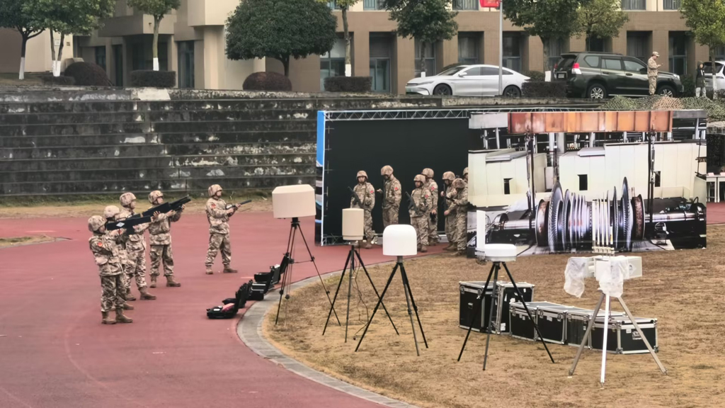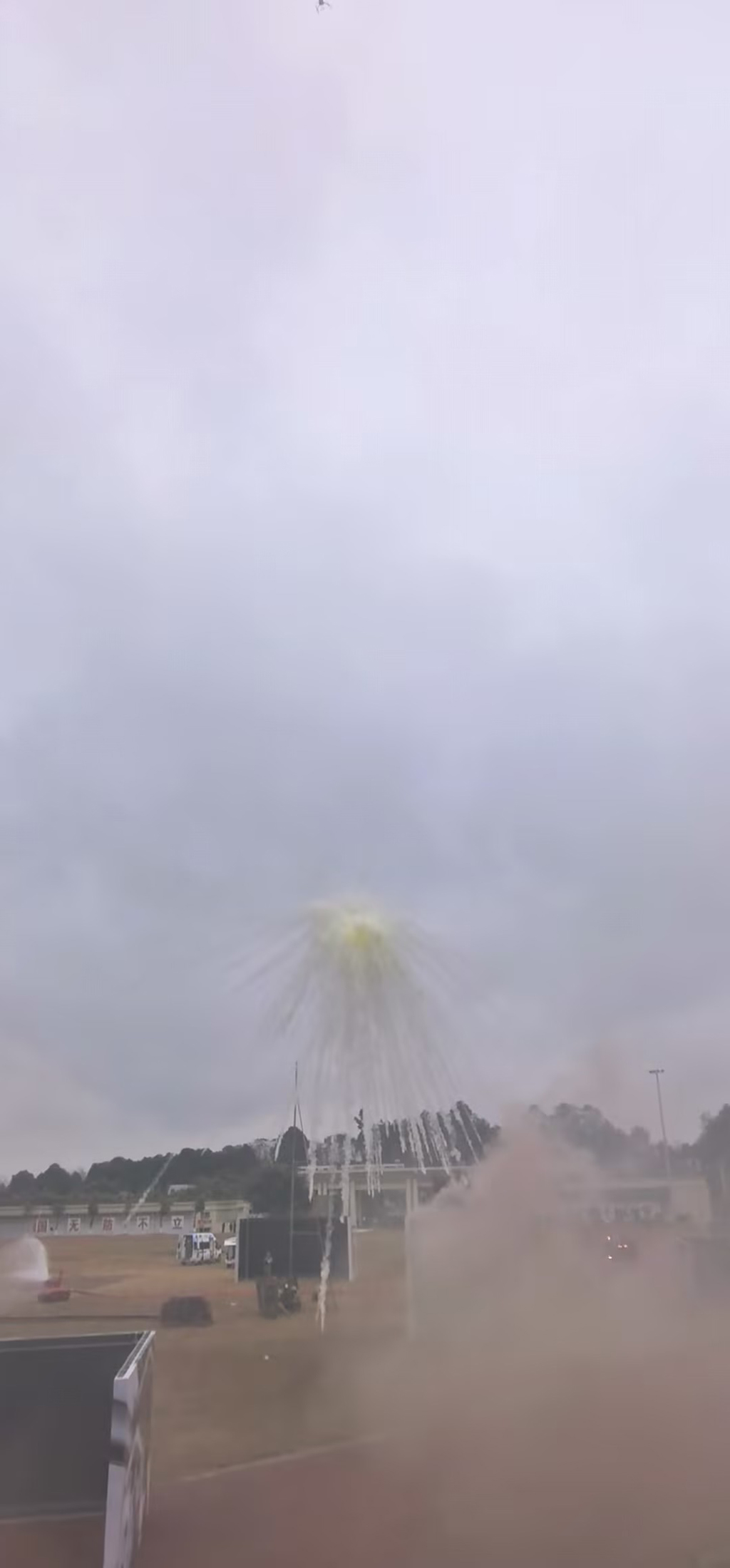 演练现场,“敌情”突至:多架表演无人机与穿越机逼近西南电厂核心区域。危急时刻,部署的地面反制设备迅速启动,精准锁定目标,大部分表演无人机被成功驱离;然而,仍有两架穿越机突破防线,坠落在厂区内并引发爆炸,火光与浓烟瞬间升起,模拟灾情升级。