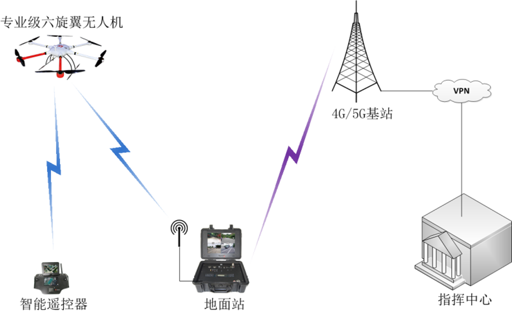 配备了1套无人机系统,通过无人机可从空中快速到达灾害现场,并从空中角度侦查现场突发情况,实时监控消防现场,让消防人员实时快速了解消防现场实况,同时也能够通过无人机实现空中喊话指挥,抛投应急物资等。