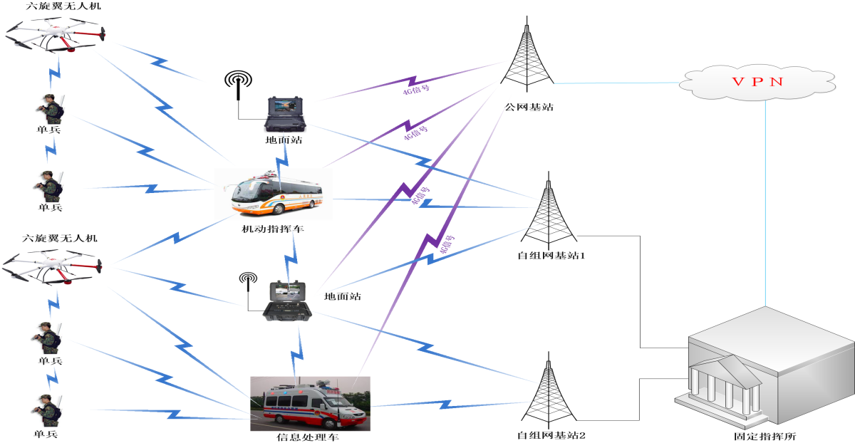 四川省人防宽带自组网应急通信系统项目共建设2套宽带自组网基站,1套机动指挥车及1套机动信息处理车宽带自组网通信系统,实现重点区域宽带自组网信号的覆盖,覆盖半径≥10km;每台车配置自组网单兵2台,无人机系统1套,车载自组网设备1套,实现了机动指挥车、机动信息处理车的音频、视频、数据等的互传。